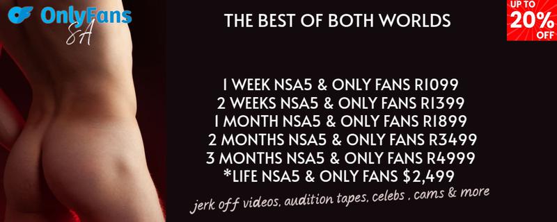 What does it cost: Only Fans pricing starts from R569 for up to 1 month - if your NSA5 membership is only 2 weeks your OFSA membership will also expire after two weeks.